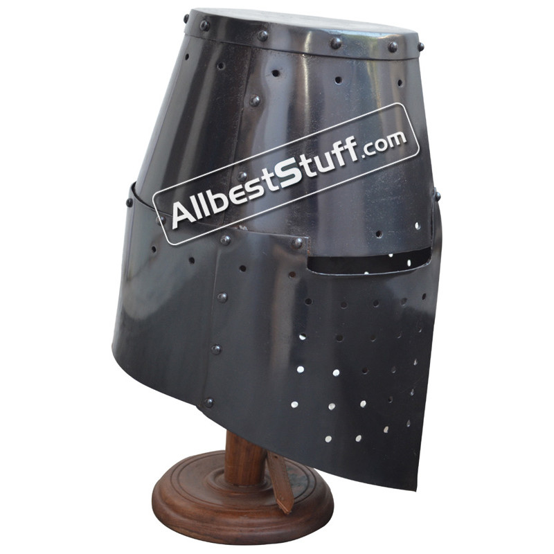 Tags: Medieval Great Helmet Crusade 16 Gauge Helm Black Finish,
